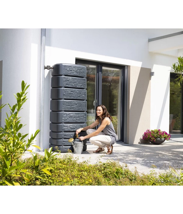 Die nachhaltigste Lösung zur Bewässerung Ihrer Pflanzen ist das Verwenden von Regenwasser. Wenn Sie auf der Suche nach einem Behälter sind, der gleichzeitig auch ein ansprechendes Deko-Objekt ist, sollten Sie sich den Wandtank Slim Stone Decor der Marke 4rain näher ansehen. Mit der stylishen Steinoptik avanciert er zu einem außergewöhnlichen Blickfang in Ihrem Garten. Ein weiteres Plus: Obwohl der 4rain Wandtank Slim Stone Decor ein sehr großzügiges Speichervolumen von 500 l aufweist, benötigt er dank der speziellen Bauweise nur wenig Platz in Ihrem Außenbereich und schmiegt sich dicht an Ihre Wand an.