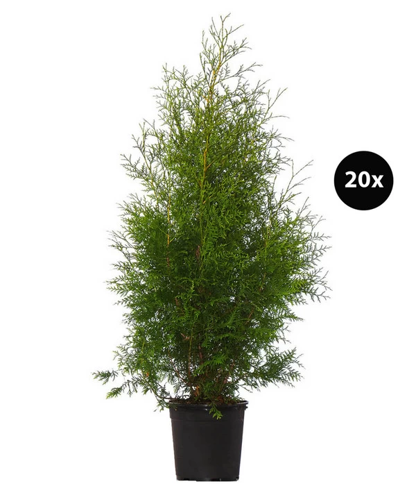 Wer eine immergrüne, schnell wachsende Pflanze für eine Hecke sucht, wird mit ziemlicher Sicherheit bei dem Lebensbaum ‘Brabant‘ landen. Denn die Vorzüge dieser Pflanze sind einfach überzeugend. Eine Thuja occidentalis wächst deutlich schneller als zum Beispiel eine Eibe, sie behält dabei einen einigermaßen schlanken Wuchs und trägt ganzjährig ein frischgrünes Nadelkleid. Das bildet schnell eine dichte, für neugierige Blicke undurchdringliche Wand, die zugleich auch noch Lärm von der Straße oder vom Nachbargrundstück abhält und den Freizeitwert Ihrer grünen Oase nochmals steigert. Und was das Gärtnerglück perfekt macht: Die Konifere hat einen wunderbar gutmütigen Charakter, ist enorm robust, absolut frostfest und gut schnitttauglich. Sie suchen Heckenpflanzen für eine ca. 7 Meter lange Hecke? Dann nehmen Sie die 20 Pflanzen Lebensbaum ‘Brabant‘ und blicken schon bald auf eine dichte, frischgrüne Hecke!