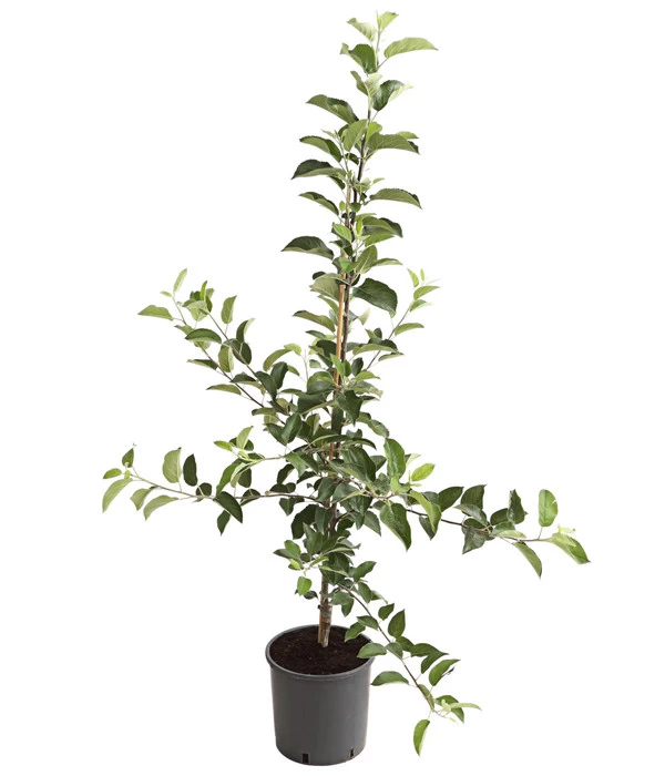 Diese Apfelbäume sind kräftige, junge veredelte Pflanzen, die mühelos in die von Ihnen gewünschte Wuchsform erzogen werden können: also als Spalier an einer Hauswand, als Hecke zu den Nachbarn oder als freistehende Apfelbäume. Ideale Pflanzzeit für diese Obstbäume ist der Herbst. Das Pflanzloch sollte mindestens doppelt so groß sein wie der Wurzelballen. Achten Sie beim Hineinsetzen der Apfelbäume darauf, dass sich die Veredelungsstellen etwa 10 cm über der Erde befinden. Dann einschlämmen, vorsichtig festtreten und auf die erste Ernte freuen.