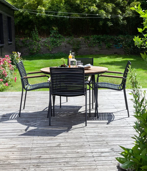 Der Cinas Stapelstuhl führt eine bequeme Schale aus Polypropylen mit einem pulverbeschichteten und unempfindlichen Aluminium-Gestell zusammen. Sie erhalten daher einen ebenso langlebigen wie stabilen Stuhl, dessen Armlehnen mit Teakholz-Elementen ausgestattet wurden, um das Gesamtdesign ausdrucksstark abzurunden. Natürlich lässt sich die schlicht gestaltete Sitzgelegenheit vielseitig zu zahlreichen Arrangements kombinieren – bei Nichtgebrauch können Sie mehrere Exemplare besonders platzsparend stapeln und verwahren. Entscheiden Sie sich jetzt für den erstklassigen Stuhl von Cinas, werten Sie Ihren Outdoorbereich spielend leicht auf und bestellen Sie das passende Polster gleich mit!
