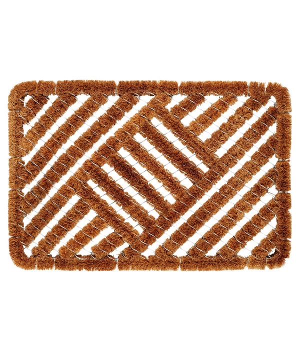 Die Fußmatte Draco des Herstellers Hamat ist eine rechteckige Fußmatte für den Außenbereich. Im Standardformat von 60×40 cm passt sie vor viele Hof- und Haustüren. Das robust ausgeführte Drahtgestell hält die Kokosfasern an der richtigen Stelle, sodass auch schweres Schuhwerk dieser Fußmatte nichts anhaben kann. Große Abstände zwischen dem Draht/Kokos-Geflecht sorgen dafür, dass Schmutz hindurchfällt und die Hamat Fußmatte Draco stets sauber aussieht. Durch starken Regen erzeugte Staunässe, wie sie bei anderen Modellen häufig auftritt, kann bei dieser Matte nicht auftreten. Die braune Farbe der Kokosfasern verhält sich in den meisten Umgebungen unauffällig, sodass sich die Hamat Fußmatte Draco problemlos in ihre Umgebung einpasst. Kräftiges Ausschlagen sorgt für eine einfache Reinigung, falls dennoch Schmutz auf der Matte hängen bleibt.