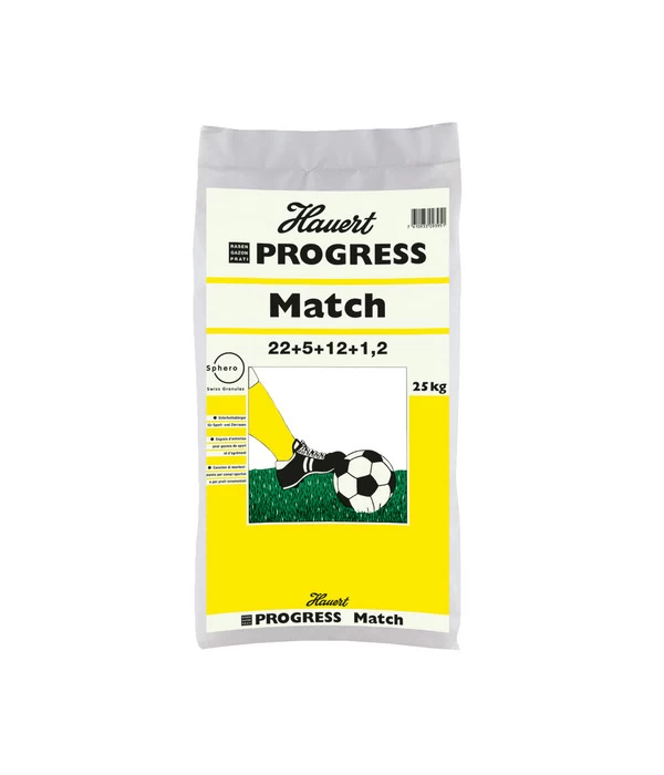 Sie wünschen sich sehnlichst einen wunderschön grünen, dichten und gepflegten Rasen, haben aber wenig Zeit und Lust, viele kostbare Freizeitstunden auf die Rasenpflege zu verwenden? Dann können wir Ihnen den Hauert Progress Match Rasendünger empfehlen. Dieser Spezial-Rasendünger hat eine Langzeitdüngung für sage und schreibe 120 Tage ‚eingebaut‘. Das bedeutet für Sie: 1 x düngen, 3-4 Monate Ruhe. Das ausgeklügelte NPK-Mischungsverhältnis von 22+5+12 im Hauert Progress Match Rasendünger versorgt die Graspflanzen mit allem, was sie für einen gesunden, kräftigen Wuchs brauchen. Der Progress Match Rasendünger gibt die Nährstoffe aber nicht sofort ab, sondern 64% des Stickstoffs liegen als Langzeitstickstoff vor, so dass der Rasen keinen Sprint einlegt, sondern schön gleichmäßig wächst und entsprechend weniger gemäht werden muss. Dank der besonderen Wirkstoffkombination ist die Verbrennungsgefahr auch in langen Trockenperioden minimal, ebenso der Auswaschungsverlust bei hohen Niederschlagsmengen.