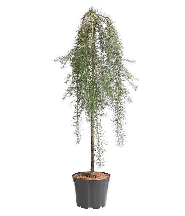 Lärchen sind relativ pflegeleichte Gartenpflanzen. In sonnigen bis halbschattigen Lagen stehen sie am liebsten in nährstoffreicher, humoser Erde, die gut durchlässig und feucht sein sollte. Durch die Veredelung auf ein Stämmchen bleibt die Wuchshöhe gleich, nur die Krone wird mit der Zeit etwas üppiger. Ein regelmäßiger Rückschnitt der Japanische Hänge-Lärche ‚Stiff Weeper‘ ist nicht notwendig.