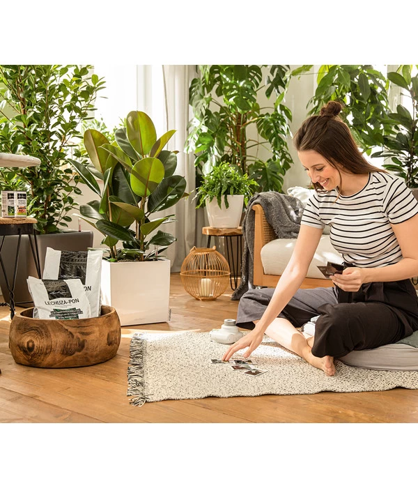 Mit LECHUZA® Pon Pflanzensubstrat geht auch ungeübten Hobby-Gärtnerinnen und Hobby-Gärtnern die Arbeit leicht von der Hand. Anders als beispielsweise bei Hydrokulturen muss die Erde nicht vollständig aus dem Wurzelballen entfernt werden. Das schont Ihre Pflanzen, denn diese Prozedur überleben gut 25 % der Gewächse nicht. Mit LECHUZA® Pon Pflanzensubstrat kann Ihnen das nicht passieren, denn hier entfernen Sie nur so viel Erde aus dem Wurzelballen, wie es ohne Schädigung der Wurzeln möglich ist. Dann setzen Sie die Pflanze in den Kübel oder Blumentopf ein und bedecken den Ballen ein bis zwei Zentimeter mit Pon. Fertig!