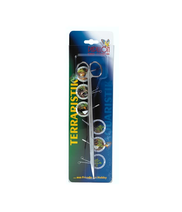 Die hochglänzende Papillon Schere aus Edelstahl ist das perfekte Zubehör, wenn es um die Pflege von Ihrem Aquarium oder Terrarium geht. Die Papillon Edelstahlschere eignet sich besonders zum Kürzen von Pflanzen und das Entfernen von abgestorbenen Blättern. Für ein gepflegtes Aquarium bzw. Terrarium ist die rostfreie Papillon Schere ein praktisches Aquarium Zubehör bzw. Terrarium Zubehör.