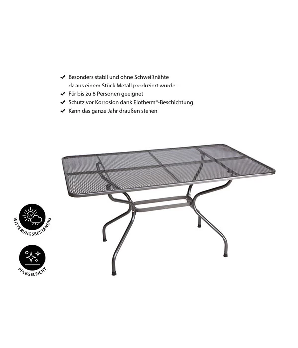 Aus robustem Metall, 145 x 90 cm, für 8 Personen