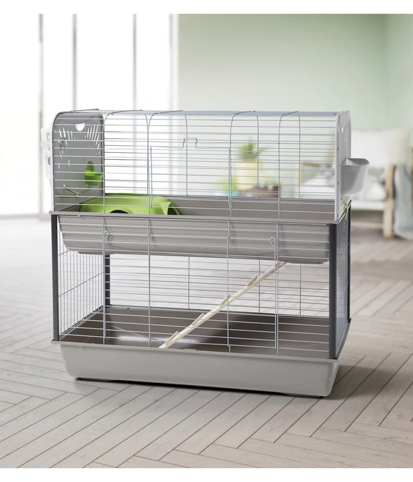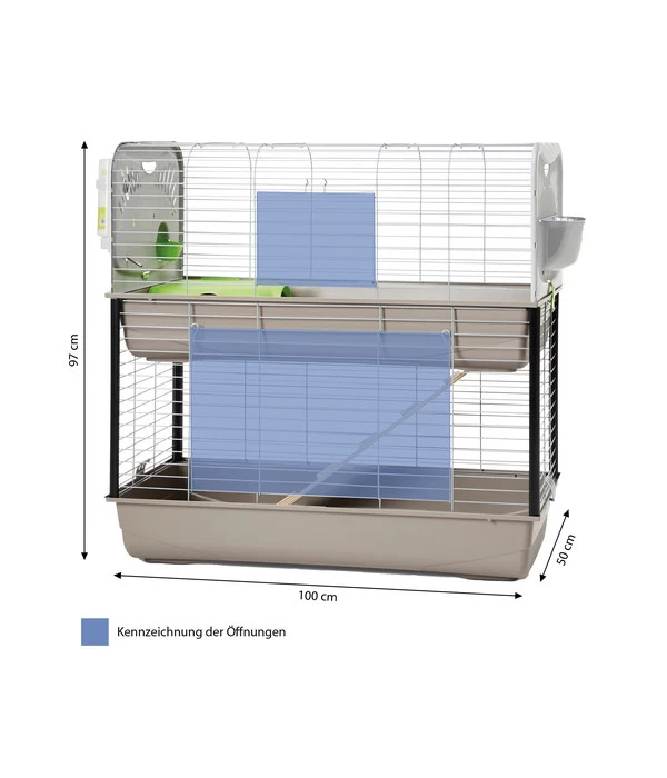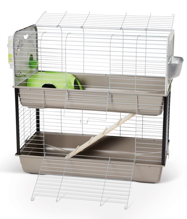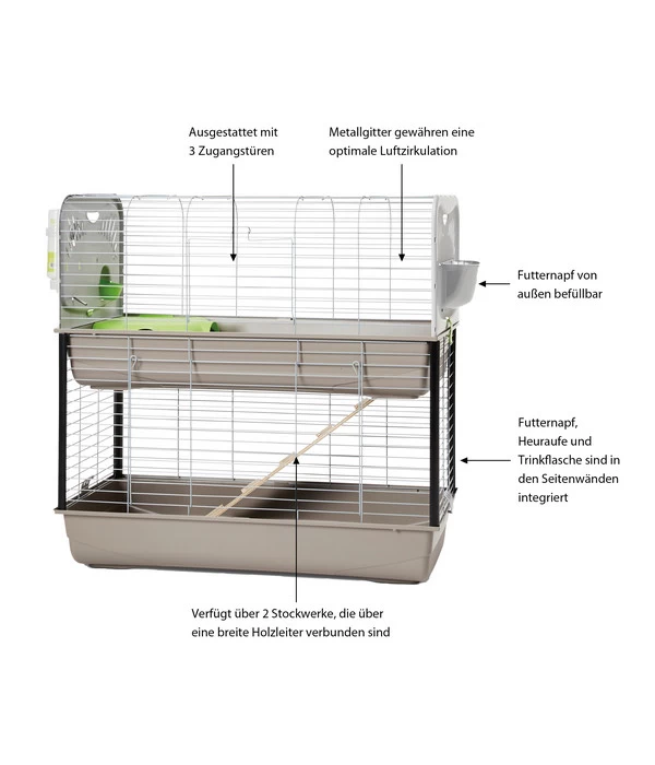 Sind Sie auf der Suche nach einem wunderbaren Zuhause für Ihre Nager, in dem sich Ihre Lieblinge geborgen und heimisch fühlen? Dann ist das Nagerheim Caesar 3 Double von SAVIC genau das, wonach Sie suchen. Das niedliche Haus verfügt über zwei Stockwerke, die über eine breite Holzleiter verbunden sind. Ihren Kleintieren steht es daher frei, nach Lust und Laune von der einen in die andere Etage zu wechseln. Darüber hinaus umfasst der Rückzugsort drei Zugangstüren, die Sie über Rampen leicht mit dem Innengehege verbinden. Schließlich bietet dieser Bau eine Heuraufe, einen Futternapf und eine 500 ml-Trinkflasche.