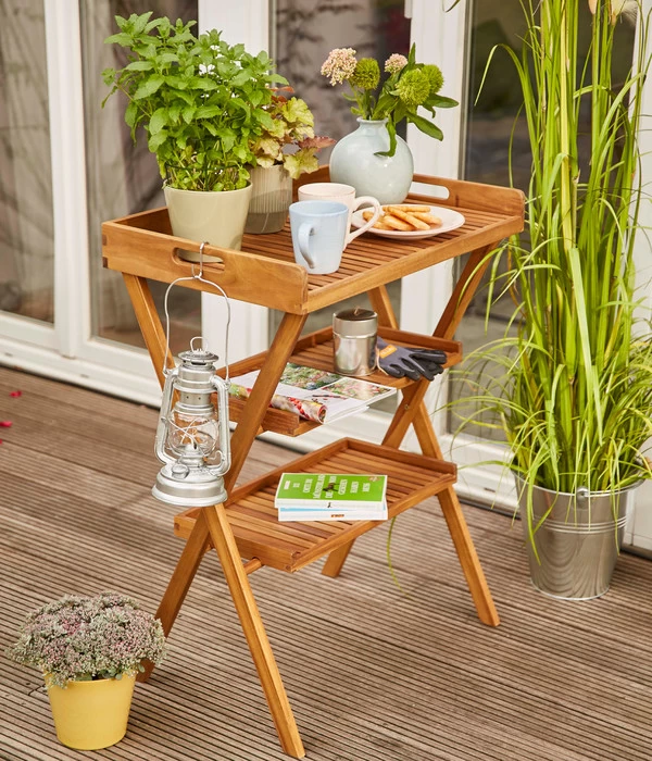 Das Grilltablett Caruna von Siena Garden besteht aus 100% FSC®-zertifiziertem und mit Öl vorbehandelten Akazienholz. Dieses Material ist sehr robust sowie wetterbeständig und eignet sich daher perfekt für den Outdoorbereich. Sollten Sie den Serviertisch zwischendurch nicht benötigen, können Sie das leichte Gestell ganz einfach zusammenklappen und platzsparend verstauen. Zum nächsten Grillabend holen Sie es dann wieder heraus und erfreuen sich an seinen Vorteilen, die jedes Familienessen noch schöner und komfortabler machen. Warten Sie nicht länger, sondern bestellen Sie das Grilltablett Caruna des Herstellers Siena Garden noch heute!