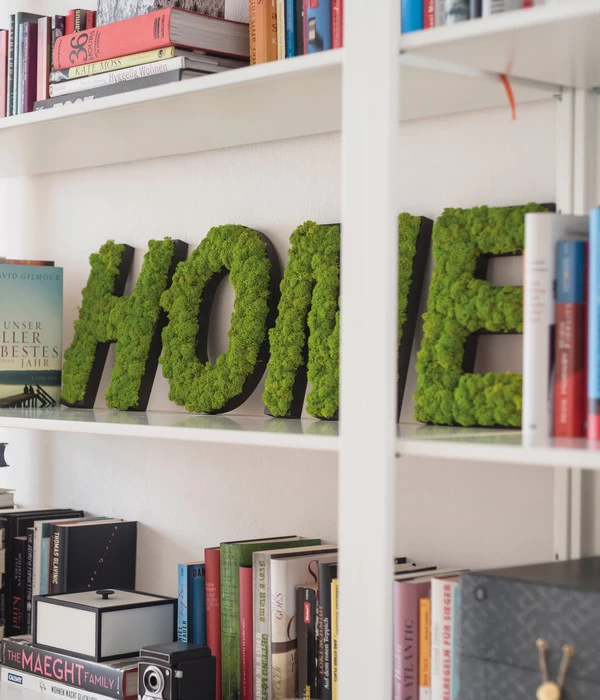 Damit Sie in ihren Innenräumen kreativ werden können, füllen erfahrene Hände einen Dekobuchstaben nach dem anderen mit frischgrünen, weichen Moospölsterchen. Das Moos wurde dafür im Vorfeld immergrün konserviert und macht Ihren Schriftzug auf viele Jahre haltbar. Die Buchstaben aus Islandmoos sind für Innenräume geeignet. Achten Sie lediglich darauf, dass sie keiner direkten Sonne ausgesetzt sind, in der Nähe einer Heizung hängen oder die Luftfeuchtigkeit extrem niedrig oder hoch ist. An Pflege müssen Sie überhaupt nicht denken, denn die antistatischen Pflanzen stoßen Staub ab. Es genügt also ab und an ein Staubwedel für den Rahmen – darüber hinaus dürfen Sie Ihr Werk einfach nur genießen.