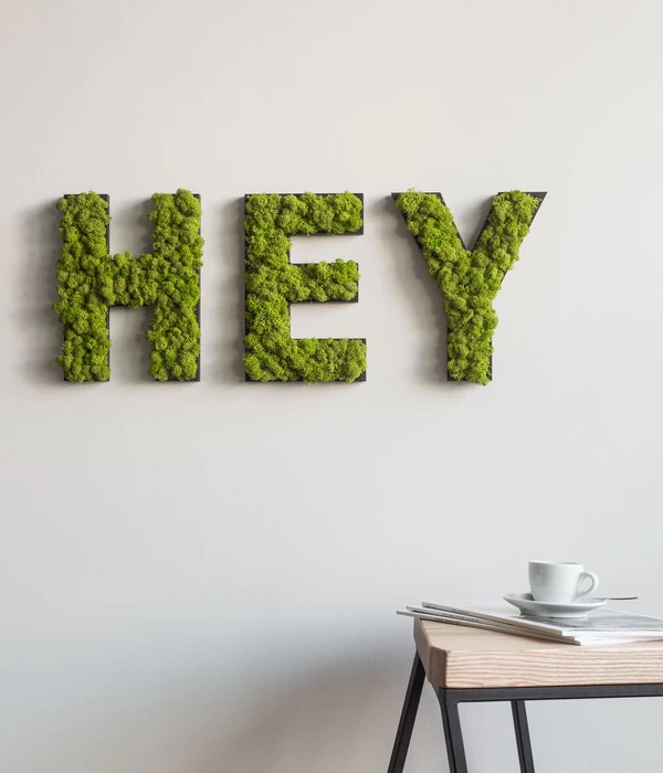 Horizontale Gärten, begrünte Wände – es gibt viele neue Trends, die so reizvoll wie natürlich sind und für die Sie sich schon seit einiger Zeit interessieren. Die Buchstaben aus Islandmoos passen einfach perfekt in diese Reihe. Ja, Sie haben richtig gesehen! Wir bieten Ihnen hier das gesamte Alphabet an – alle von Hand aus echtem, konservierten Islandmoospölsterchen angefertigt. Stellen Sie sich nur vor, was sich daraus alles kombinieren und gestalten lässt! Sagen Sie in Ihrem Eingangsbereich „Willkommen!ˮ, schreiben Sie Ihren Lieblingsspruch an die Wand oder stellen „Liebeˮ ins Regal über Ihrem Bett. Sie werden erstaunt sein, wie dekorativ das flauschige, frischgrüne Moos wirkt und wie dessen natürliche Ausstrahlung den Raum erfüllt. Also, was immer Sie gerne mit den Buchstaben aus Islandmoos ausdrücken wollen, wählen Sie einfach aus und legen los!