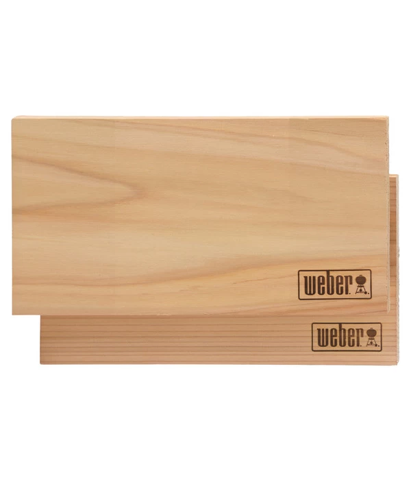 Ein Räucherbrett für alle Fälle: Das Weber Räucherbrett ist einfach praktisch, denn es eignet sich für alle Grills. Zudem wurde es aus naturbelassenem Zedernholz für echten Räuchergeschmack gefertigt und ermöglicht schonendes Garen von Schweinefleisch, Geflügel und Fisch. Außerdem ist das Weber Räucherbrett ein mehrfach verwendbares und ausgezeichnetes Grillzubehör, das vor Gebrauch in kaltes Wasser zu legen ist. Das Set besteht aus zwei Räucherbrettern aus naturbelassenem Zedernholz.