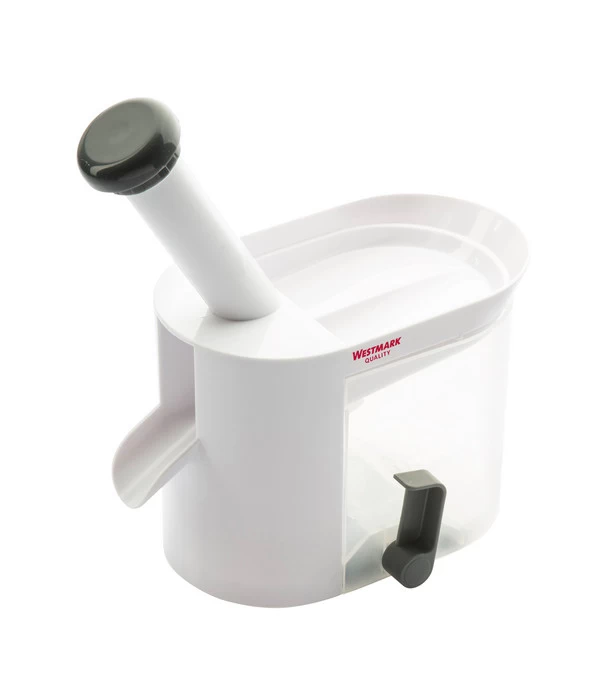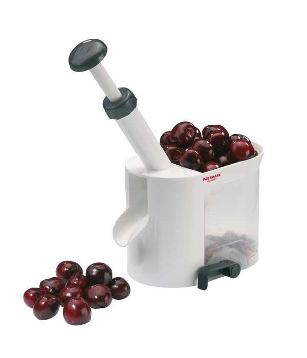 Mit dem Westmark Kirschentkerner werden Rezepte mit frischen Kirschen zum Kinderspiel. Der Kirschentkerner zeichnet sich durch sein großes Fassungsvermögen aus. Dank der praktischen Schütte können Sie problemlos eine Vielzahl von Kirschen auf einmal entkernen. Die Früchte rutschen einzeln in die Rutsche, und mit dem Stößel entfernen Sie mühelos die Kerne, ohne sich die Hände schmutzig zu machen. Der transparente Kern-Auffangbehälter ermöglicht eine einfache Entleerung und lässt sich gut reinigen. Selbstgemachte Kirschgrütze und Kirschkuchen sind der Inbegriff von Genuss und Sommer. Ihre Familie und Freunde werden von den köstlichen Kreationen begeistert sein.