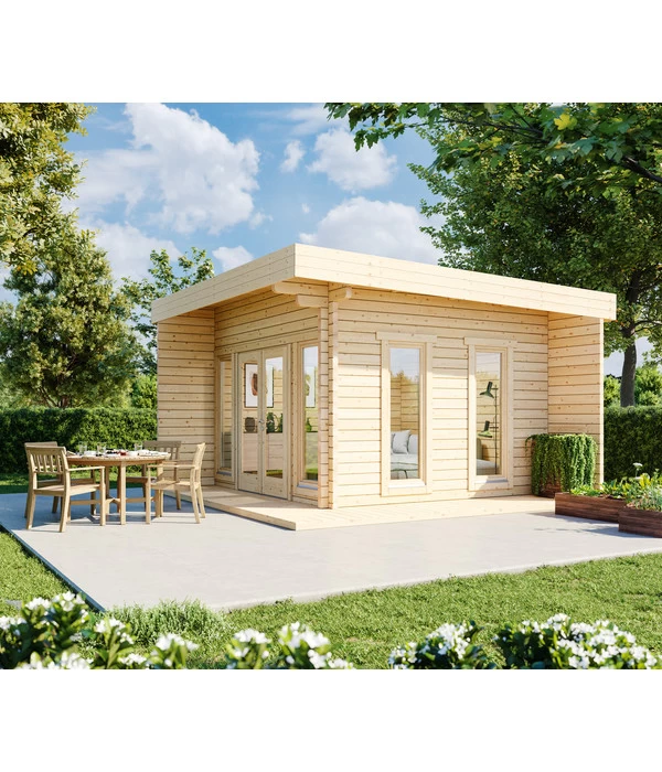 Wer ein hochwertiges Gartenhaus sucht, das mit seinem vielen Holz und der klassischen Blockbohlenbauweise einladend gemütlich wirkt, aber nicht den Look einer urigen Holzhütte mit Giebeldach und kleinen Fenstern hat, für den ist das Wolff Finnhaus Gartenhaus Aalborg 44-C XL genau das richtige. Es präsentiert sich in einem modernen Architekturstil mit Flachdach und vielen bodentiefen Fenstern, die viel Licht ins Innere des Hauses fallen und dort eine helle, freundliche Atmosphäre schaffen. Und mit seiner Grundfläche von über 15 m² bietet es Ihnen viel Raum für die verschiedensten Freizeitaktivitäten. Mal allein, mal zu zweit, mal mit den Kindern, den Nachbarn und guten Freunden. Bestellen Sie gleich das Wolff Finnhaus Gartenhaus Aalborg 44-C XL und schon bald wird es fix und fertig vor Ihnen stehen, so dass Sie zur Einweihungsparty einladen können.