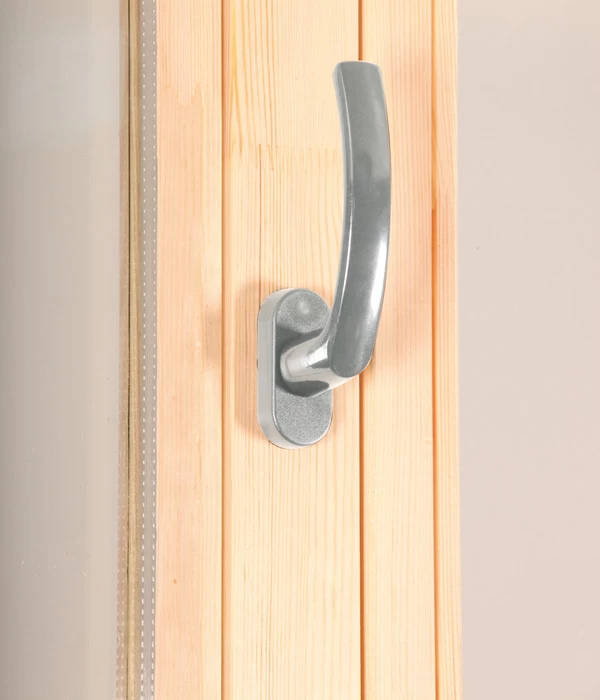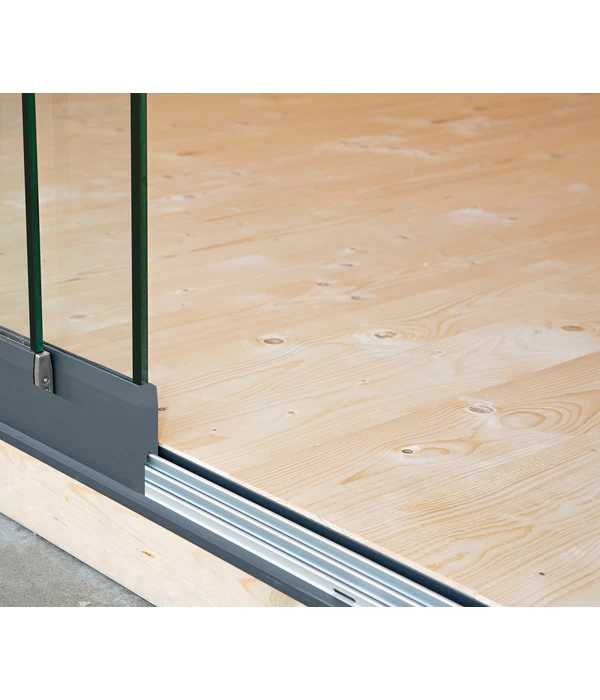 Die bodentiefen Fenster haben beim Wolff Finnhaus Gartenhaus Trondheim inkl. Schiebetür rechts eine hochwertige Sicherheitsverglasung, die sich rechtseitig öffnende Schiebetür besteht aus 8 mm Sicherheitsglas inklusiv Zylinderschloss. Leicht und leise lässt sie sich in ihren Führungsschienen gleiten und nie steht ein offener Türflügel im Weg.
