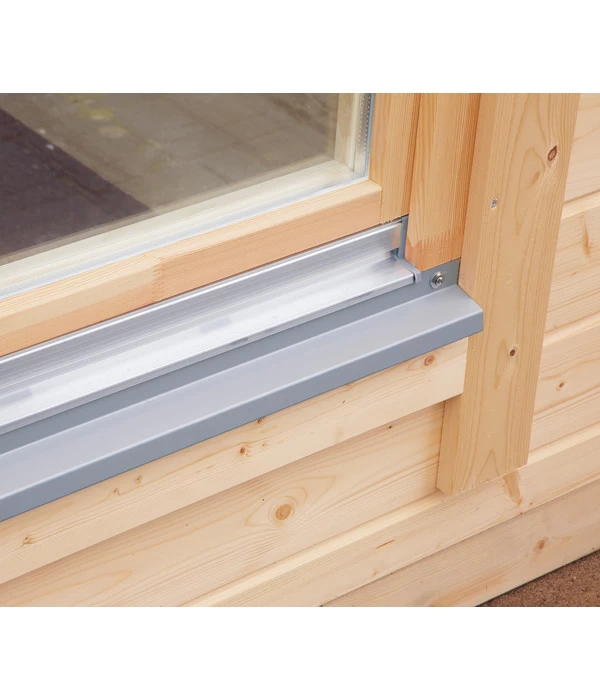 Die Wandbohlen sind beim Wolff Finnhaus Gartenhaus Trondheim inkl. Schiebetür rechts 44 mm dick und werden durch massive Fußbodendielen mit 28 mm Stärke und Dachbalken mit 20 mm ergänzt. Bei allen Hölzern handelt es sich um hochwertige, Nordische Fichte, die maßgenau gesägt und genutet wurde, um Ihnen den Selbstaufbau zu erleichtern. Des Weiteren wird durch eine spezielle Montageart eine wind- und regendichte Verbindung in den Ecken gewährleistet. Da sich aufgrund der geringen Dachneigung eine Abdeckung mit Schindeln nicht eignet, empfehlen wir Ihnen, das Dach mit einer hochwertigen, selbstklebenden Dachbahn einzudecken und so das Eindringen von Wasser in Ihr schönes Holzhaus zu verhindern.