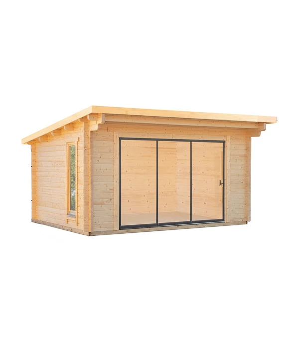 16,2 m², 44 mm Wandbohlen, Pultdach, Iso-Glas